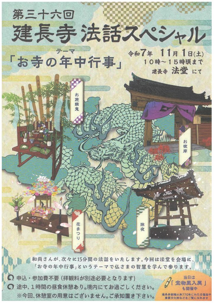 普段はご覧になれない建長寺の宝物を間近に見ていただける機会です。
